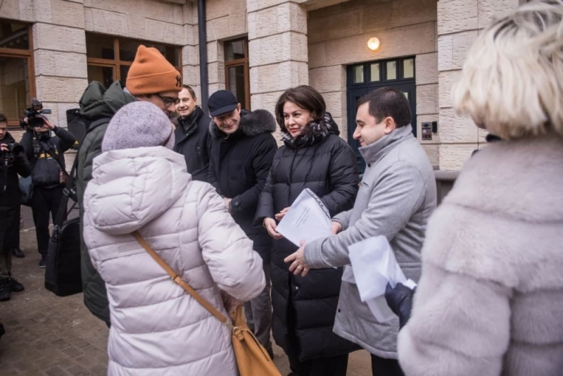 Долгожданные ключи от квартир они получили из рук заместителя министра строительства и ЖКХ РФ Никиты Стасишина, генерального директора Фонда защиты прав участников долевого строительства Константина Тимофеева, министра жилищной политики Московской области Инны Федотовой и врип главы администрации городского округа Красногорск Дмитрия Волкова. После вручения состоялось символичное перерезание красной ленты и осмотр квартир.